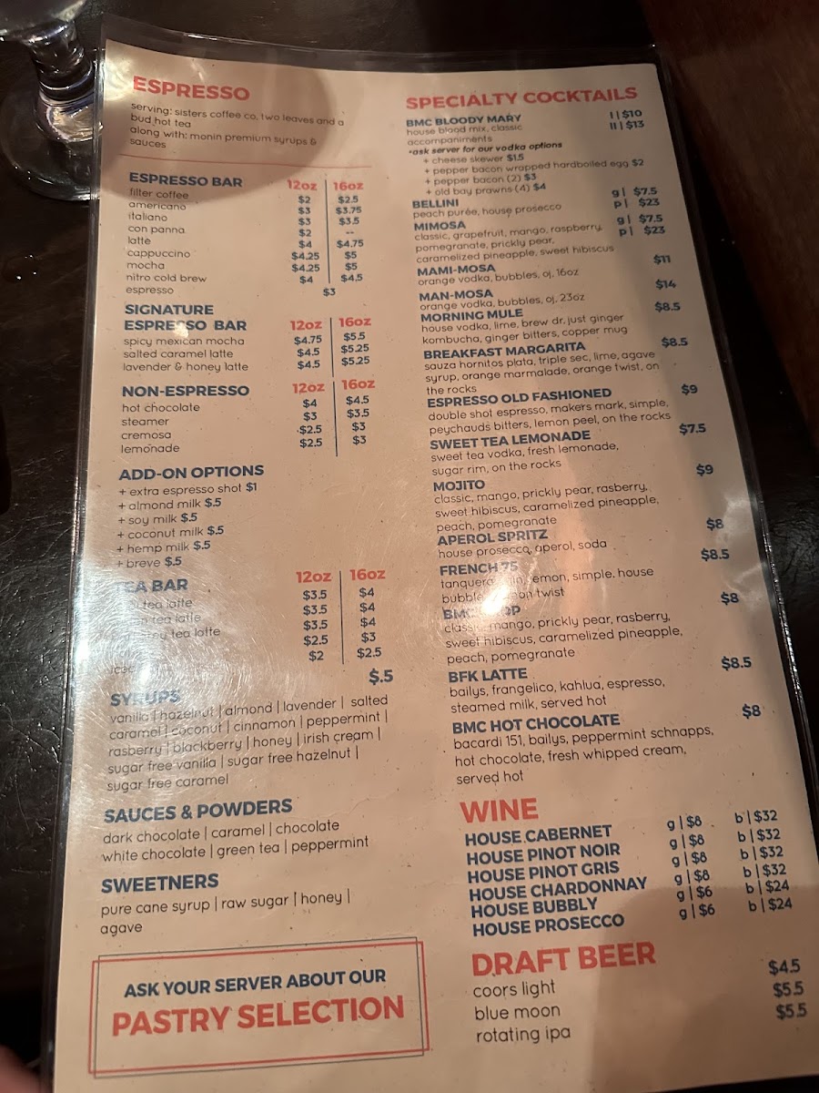 6oz steak grilled to medium, horseradish crème, two eggs your way, shredded potatoes, choice of toast (5-grain wheat, sourdough, english muffin, marble rye)